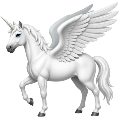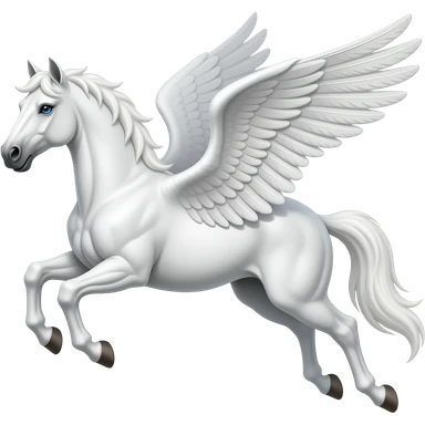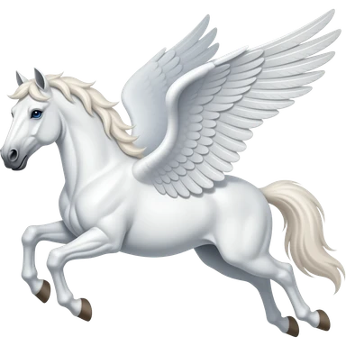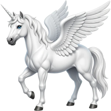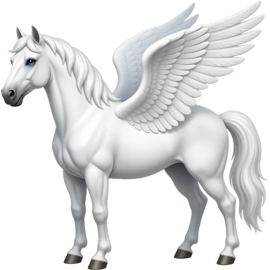 a white muscle stallion flying with wings, a short mane, blue eyes, and gold hooves emoji | AI Emoji Generator