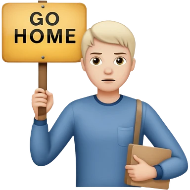 A white person holding a sign that says go home emoji | AI Emoji Generator