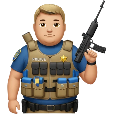 A fat police man with who is retarded, with a armor vest that has a name tape that says Keller and an m4 rifle emoji