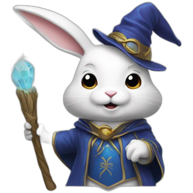 A side profile of a white rabbit wearing a wizard hat and holding a staff emoji