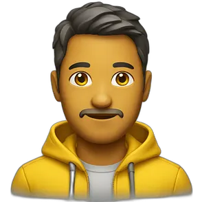 A white software developer in a gray hoodie in front of an apple laptop emoji | AI Emoji Generator