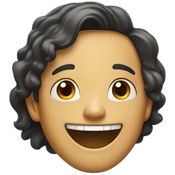 A white speech bubble icon with a happy, smiling face. The face has closed eyes and a wide, open-mouth smile, giving it a cheerful and content expression. The background is blackemoji