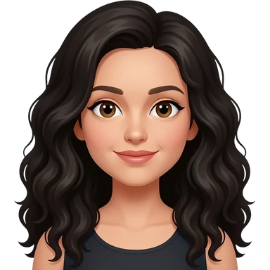 A white woman with long curly black hair and brown eyes. emoji