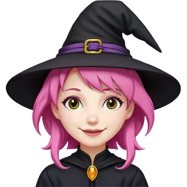 Witch pink hair wear a black hat emoji