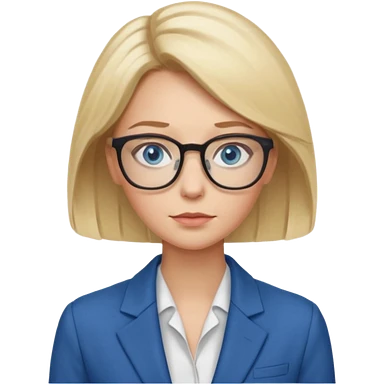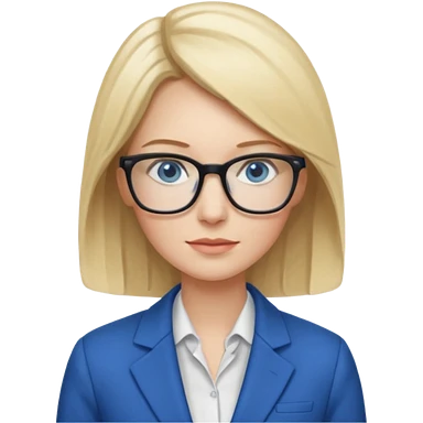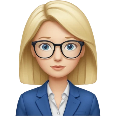 a woman, blonde highlights in hair, glasses and blue eyes. teacher emoji