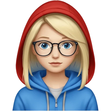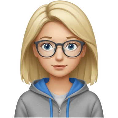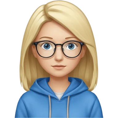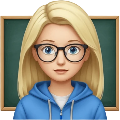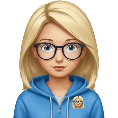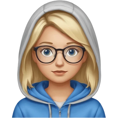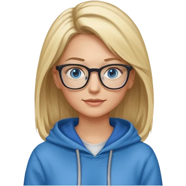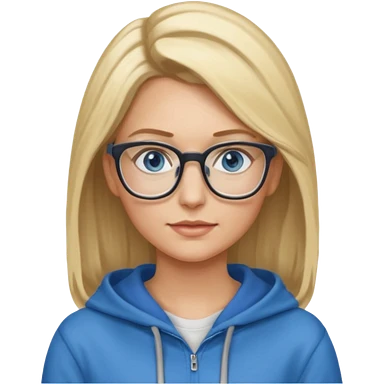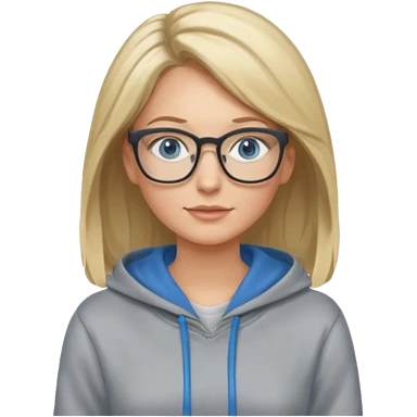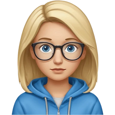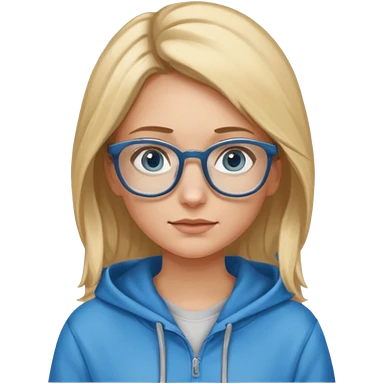 a woman, blonde highlights in hair, glasses and blue eyes. teacher, with a hoodie on and hair longer than shoulders, mid 30s emoji