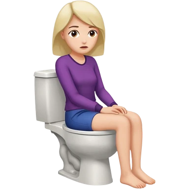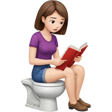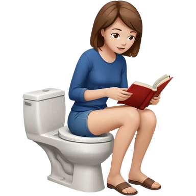 A woman is sitting on the toilet, her pants are pulled down and she it reading a book. She is struggling because she tries to poop. Side view emoji