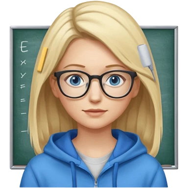 a woman, blonde highlights in hair, glasses and blue eyes. teacher, with a hoodie on and hair longer than shoulders emoji