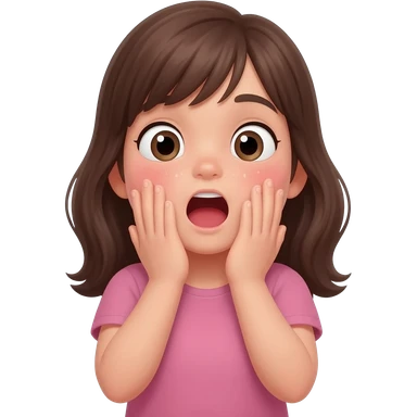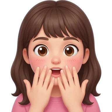 The girl covers her mouth with both hands, her cheeks blushing shyly. Tiny sparkles shine in her eyes, showing a surprised and excited expression. emoji
