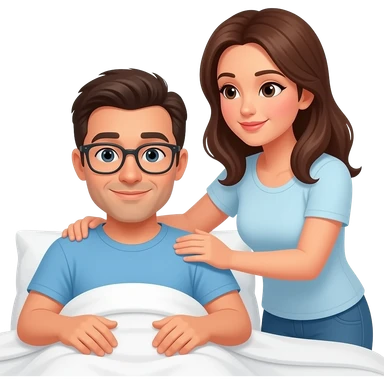 A woman massages a man In bed emoji