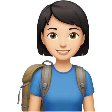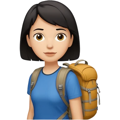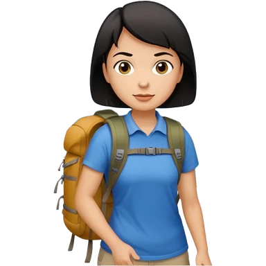 Hiking woman with brown hair and a backpack emoji