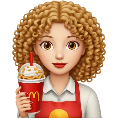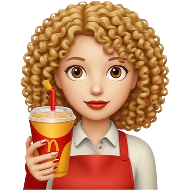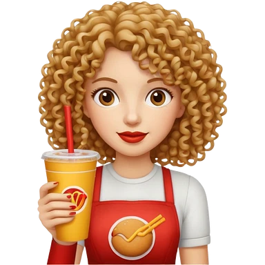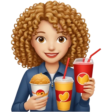 curly hair woman holding fastfood drink emoji