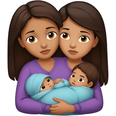 A woman holds her baby in her hands hugs him and looks a little agressive emoji | AI Emoji Generator