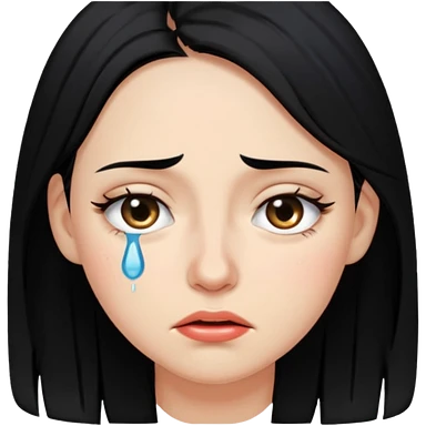 A woman in her late 20s with black hair with tears in her eyes and a look of hunger emoji | AI Emoji Generator