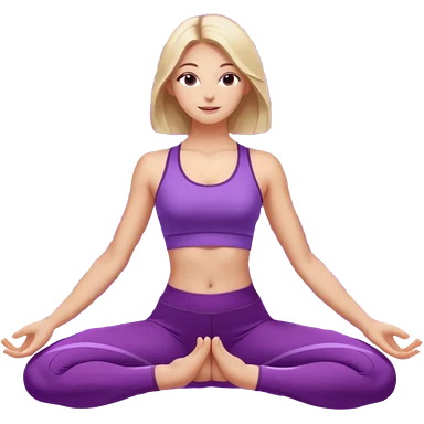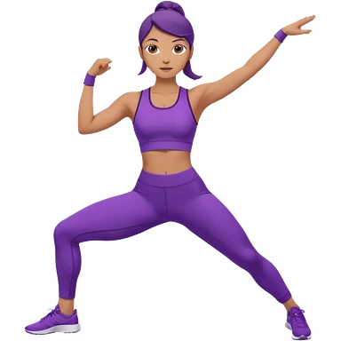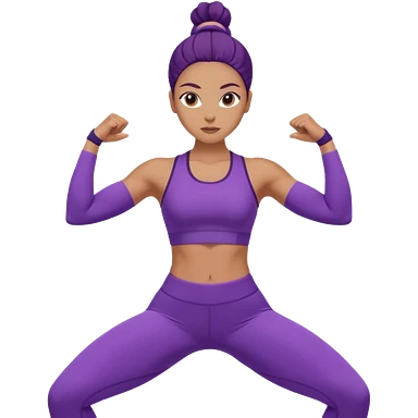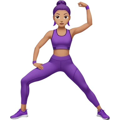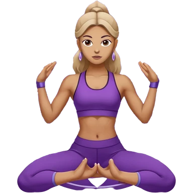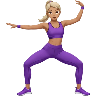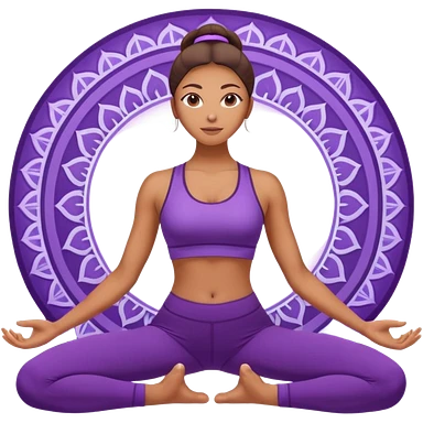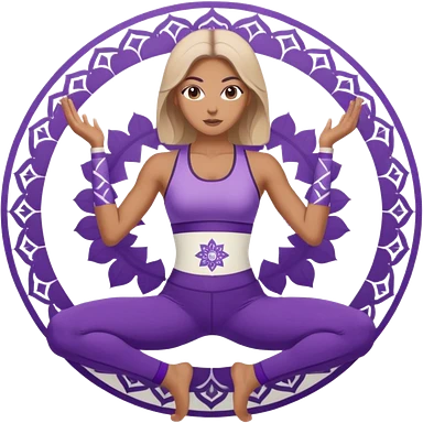 A woman in purple activewear holding warrior two pose, centered with a white mandala pattern behind her. emoji | AI Emoji Generator