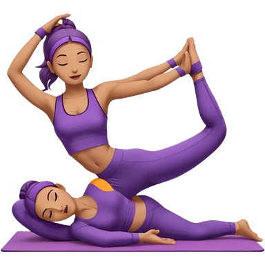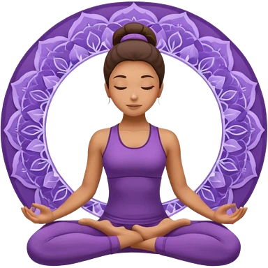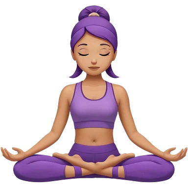 A woman in purple yoga wear resting in child’s pose, soft white background, peaceful energy. emoji | AI Emoji Generator