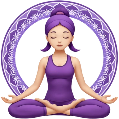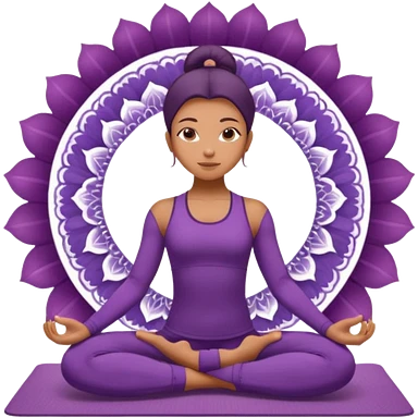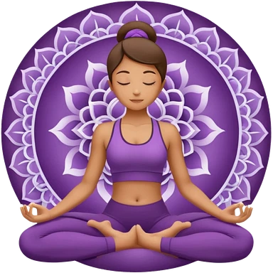 A woman in a purple yoga outfit resting in child’s pose, peaceful feeling, gentle mandala texture in background. emoji