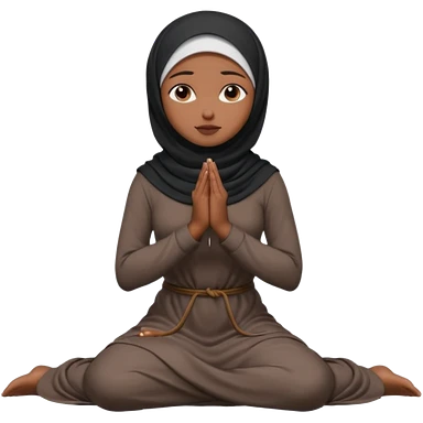 A woman kneeling praying, in a long dress, mid length curly dark brown hair emoji | AI Emoji Generator