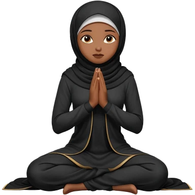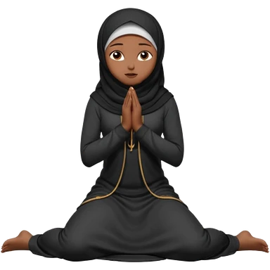 darkskin muslim black woman praying kneeling with dark hijab hyper realistic face, half side position emoji
