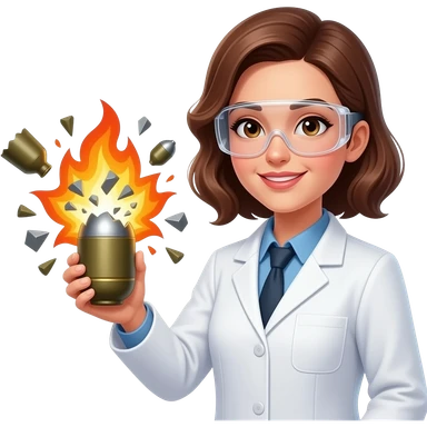 a woman scientist holding an exploding munitions shell emoji