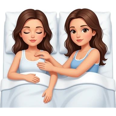 A woman sleeps and another woman touches her breasts while she is sleeping emoji