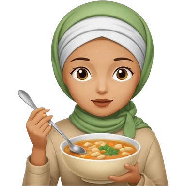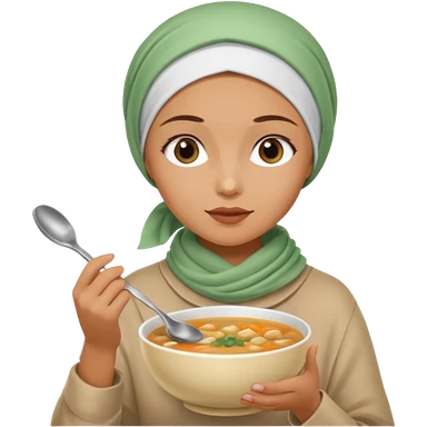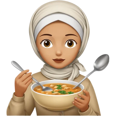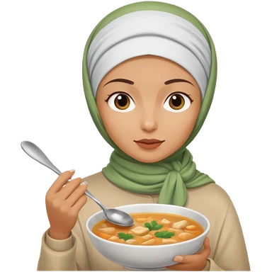 a woman wearing a pashmina hijab is eating while holding a spoon emoji | AI Emoji Generator
