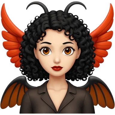 A woman with a curly black hair with mothman emoji | AI Emoji Generator