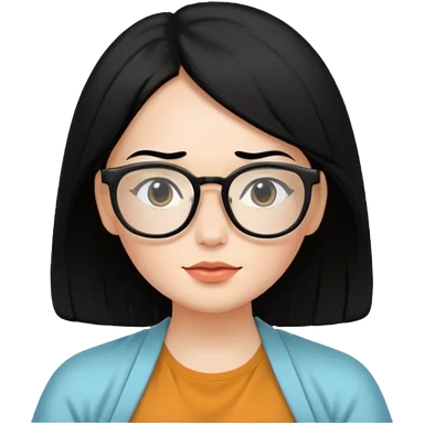 Create me a girl with a square cut, black hair, and square glasses emoji