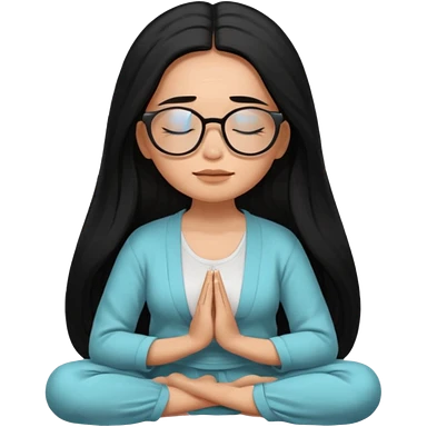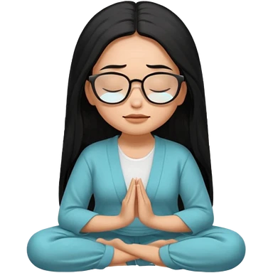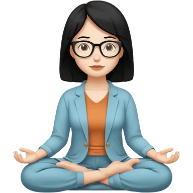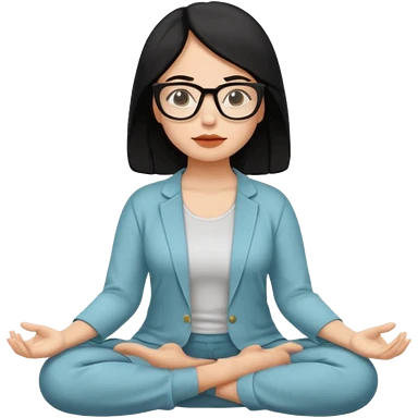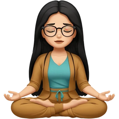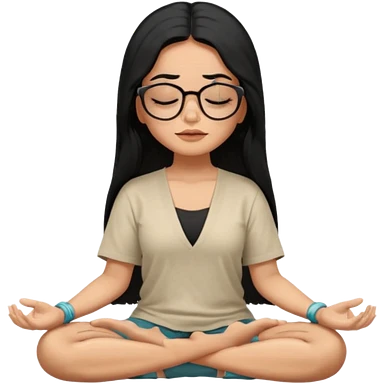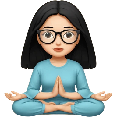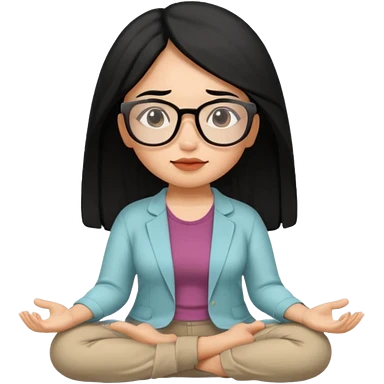 A woman with black hair and big square glasses meditating emoji | AI Emoji Generator