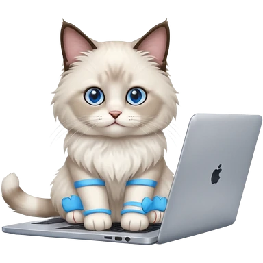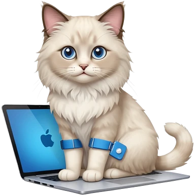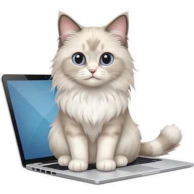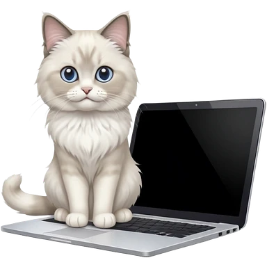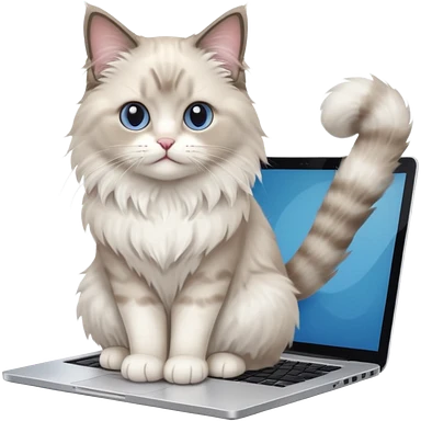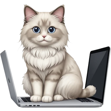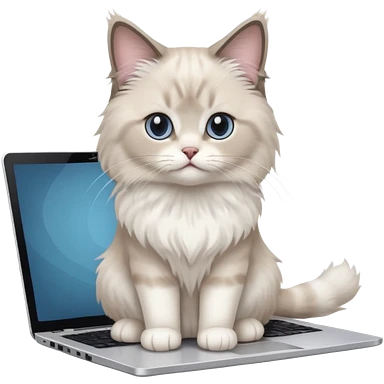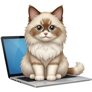 Cute ragdoll cat on a laptop. Should sit on top of the laptop, cat is way bigger than the laptop. Could walk on the laptop or sit. I liked the first one but remove the blue on the cat emoji