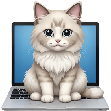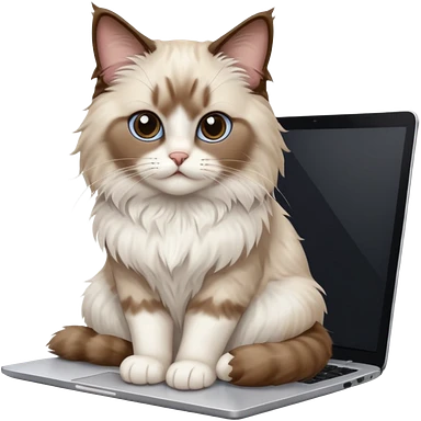 Cute ragdoll cat on a laptop. Should sit on top of the laptop, cat is way bigger than the laptop. Could walk on the laptop or sit. I liked the first one but remove the blue on the cat, Please make the brown parts light grey emoji