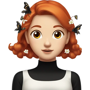 A woman with strikingly long, wavy, vibrant red hair, which is styled with two small buns on top of her head. She is wearing a shiny red leather jacket over a red top with a black patterned trim. She's gagged emoji | AI Emoji Generator