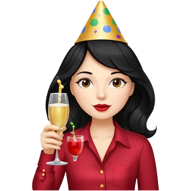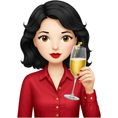 A woman with wavy black hair and a beautiful and authoritative cherry shirt drinking champagne emoji | AI Emoji Generator