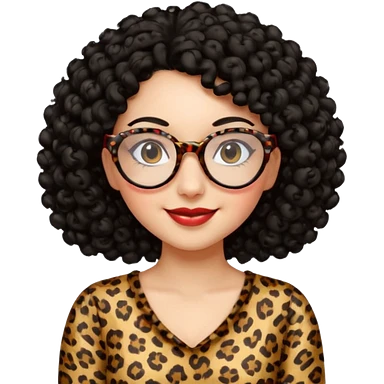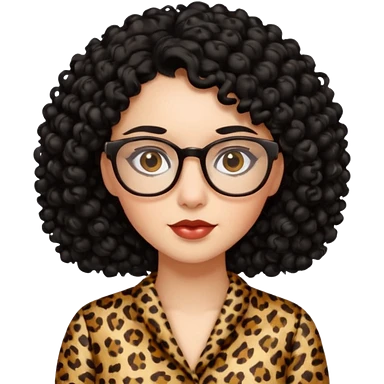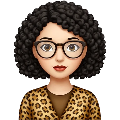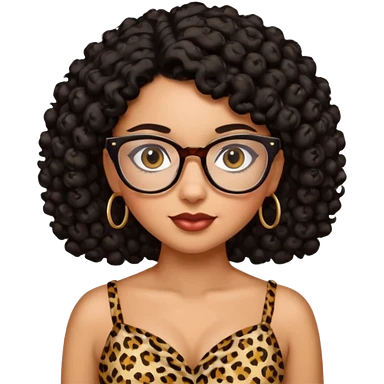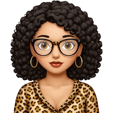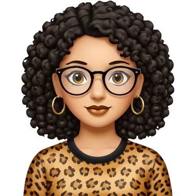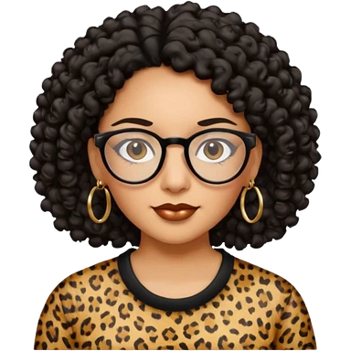 A women who wears glasses with a black curly hair, in a leopard print shirt, hoop earrings emoji | AI Emoji Generator