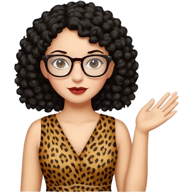 A women with a black curly hair and heart glasses, leopard print dress emoji