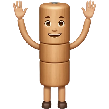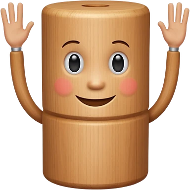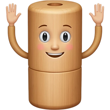 A wooden cylinder with a face with arms and legs emoji | AI Emoji Generator