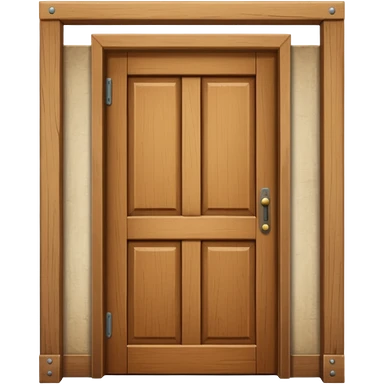 a wooden door that is wide open. The door frame is simple and matches the wood tone of the door. emoji | AI Emoji Generator