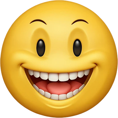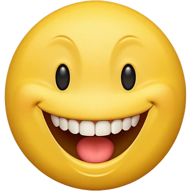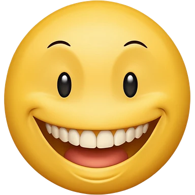 a yellow smiley face with very big teeth like the trivago guy emoji