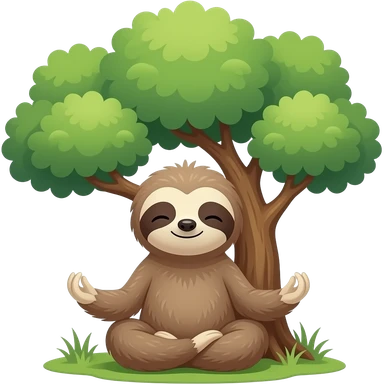 a cute 2d flat icon of a cute sloth meditating under a tree emoji