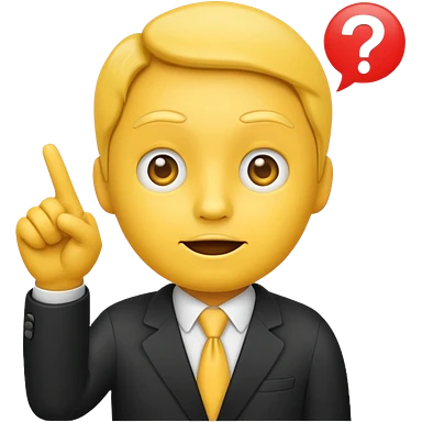 a yayayoyo style face and hand emoji pointing to question and answer