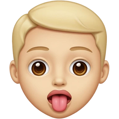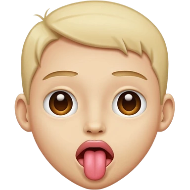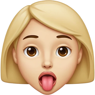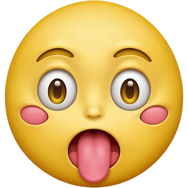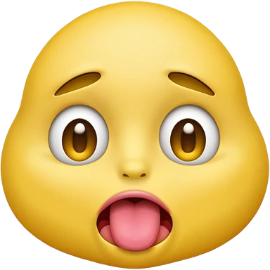 A yellow Apple-style emoji face with a round smooth 3D design, eyes rolled far back showing only the whites, mouth wide open, tongue sticking out, slightly parted lips, concerned or dazed expression emoji | AI Emoji Generator