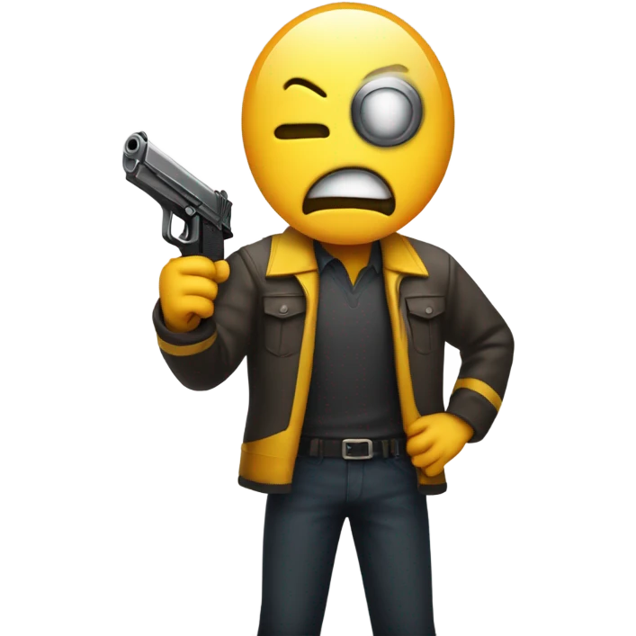 A yellow-faced emoji with a gun saying with a text bubble saying no I'd win looking angry emoji | AI Emoji Generator