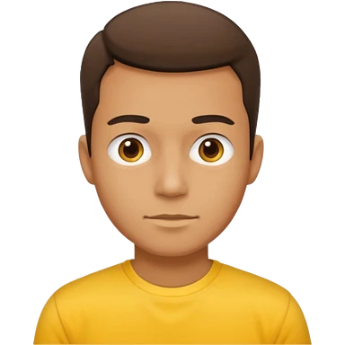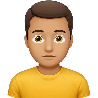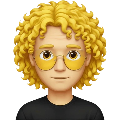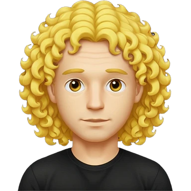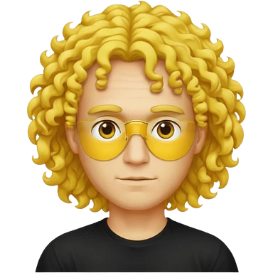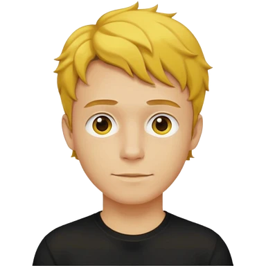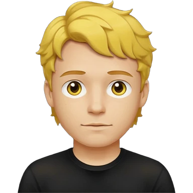 a yellow-faced standard man short wavy light-brown hair wearing a black t-shirt, face and shoulders. The yellow of the face is very bright. emoji | AI Emoji Generator