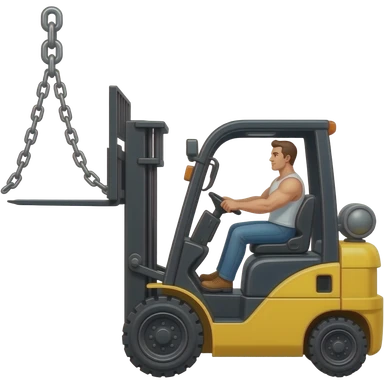 A yellow forklift going right, with a strong man driving, and raising up big chain links. emoji | AI Emoji Generator