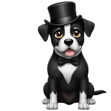 a yorkshire with charles chaplin hat and moustache emoji | AI Emoji Generator