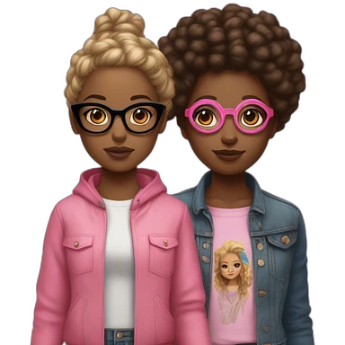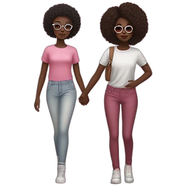 A young black-skinned woman with natural African hair dressed in classic clothes and a young girl with white skin wearing big pink glasses and streetwear clothes who are both holding hands emoji