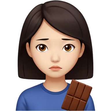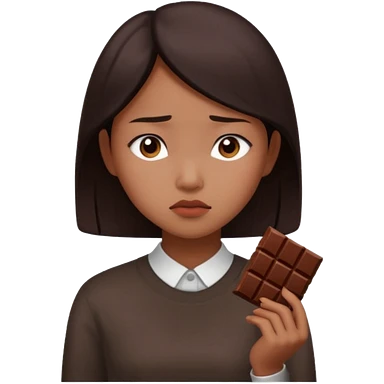 A young Asian dieter with a gloomy expression, thinking of chocolate emoji | AI Emoji Generator