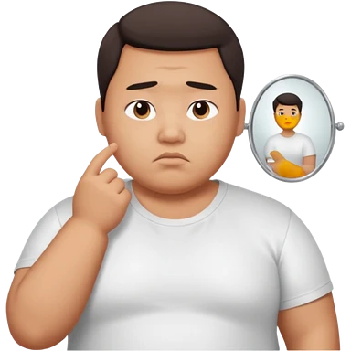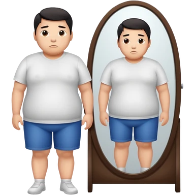 A young Asian guy has let his body go and is looking sadly in the mirror. emoji