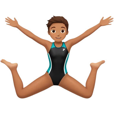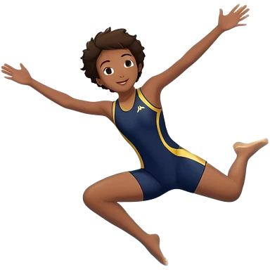 A young person leaps boldly into a pool named “Confidence,” arms wide, surrounded by skilled divers mid-air. Though less experienced, their fearless energy shines, symbolizing the courage to grow alongside greatness. emoji