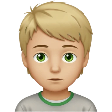 A young boy with wavy brown hair, large expressive eyes, and freckles across his cheeks. He has a curious and adventurous expression, with slightly raised eyebrows and a gentle smile, light skin emoji | AI Emoji Generator